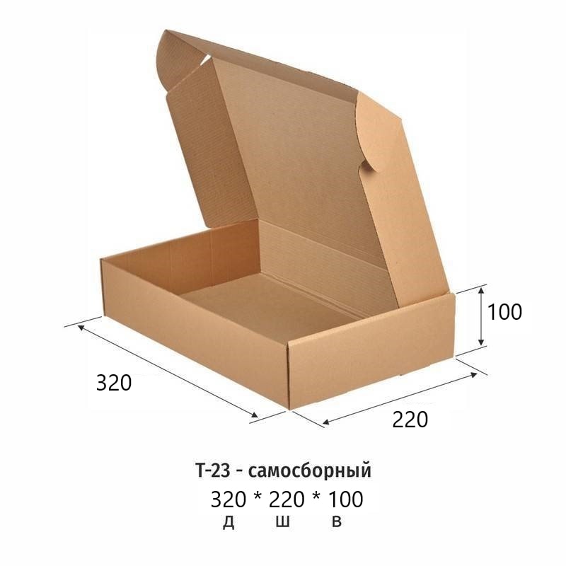 Самосборный короб с ушками Т-23 320*220*100 мм, бурый, профиль Е, FEFCO 0427